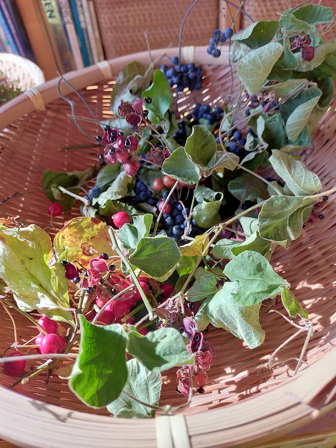 運営委員や参加者の方がいろんな葉っぱや木の実を集めて持ち寄ってくれて、