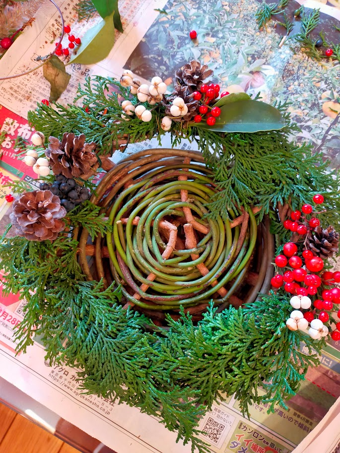 どれもとても素敵なリースに仕上がっていて、みなさんお互いに「素敵ですね✨」と声を掛け合っていました(^^)