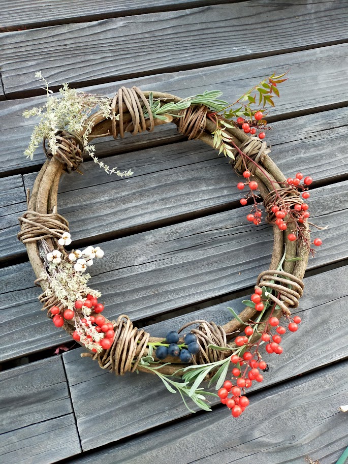 参加者の方は好きな土台リースと素材を選んで、各々思い思いに素敵なリースを作ってもらいました。