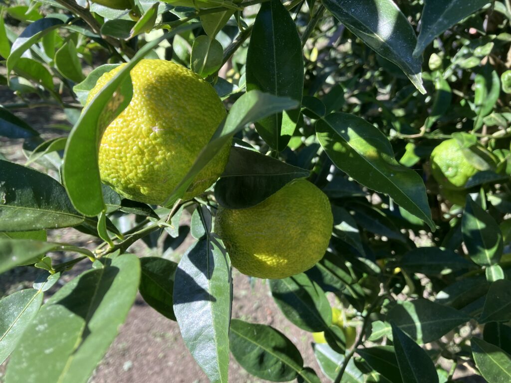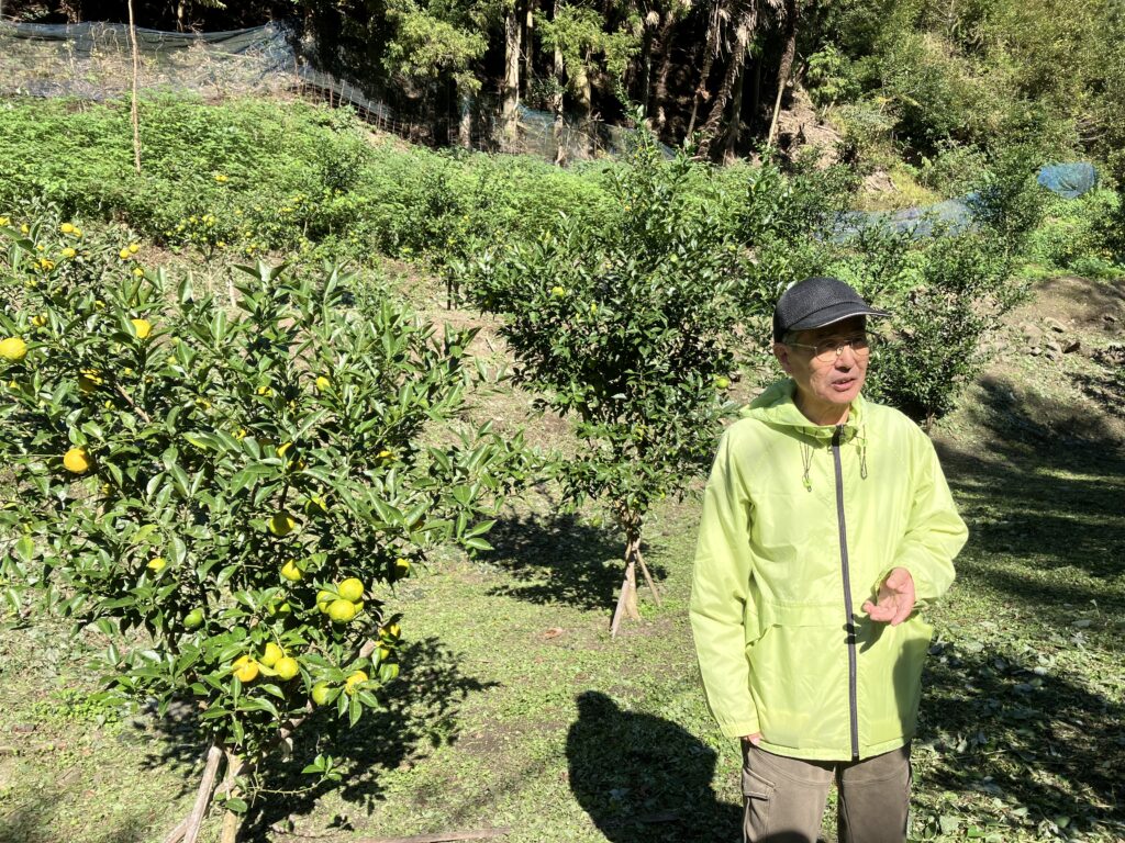 東温市の奥松瀬川で柚子を栽培されている花山さん、12月から柚子を供給してくださることになりました。県産柚子はこれまでなかったので、ありがたいです。